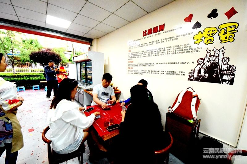 本網(wǎng)訊: “飯前不摜蛋,等于沒(méi)吃飯;飯后不摜蛋,等于白吃飯 ”。這是目前對(duì)這一非遺撲克游戲最精辟的總結(jié)。4月20日,昆明首家以摜蛋命名的燒烤店在穿金路上開(kāi)業(yè),同時(shí)開(kāi)啟了飯前摜蛋撲克游戲。精不精彩,好不好玩,咱們走一個(gè)。