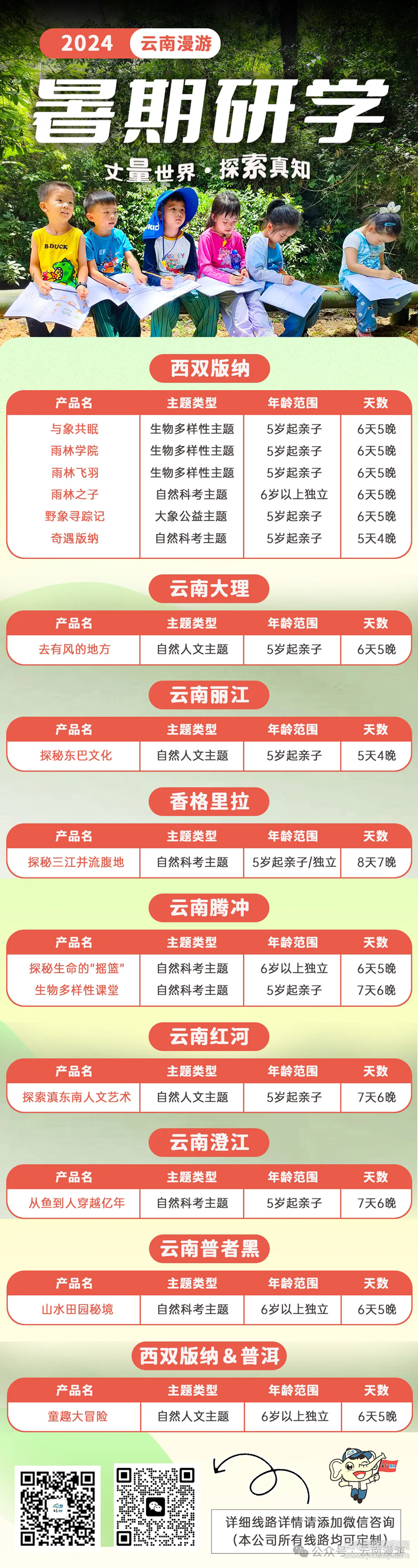 公司倡導(dǎo)親戶外,慢旅行的旅游方式,引領(lǐng)并提供專業(yè)化的體驗式旅游服務(wù),并致力于云南文化旅游、研學(xué)游學(xué)、康養(yǎng)旅居、教育培訓(xùn)和戶外運動事業(yè)等相關(guān)項目的投資經(jīng)營和創(chuàng)新服務(wù)。主要經(jīng)營項目是自然教育游學(xué)、康養(yǎng)旅居游學(xué)、團(tuán)建拓展游學(xué)、畢業(yè)旅行游學(xué)、雨林鄉(xiāng)村茶山游學(xué)、營地戶外游學(xué)服務(wù)等。