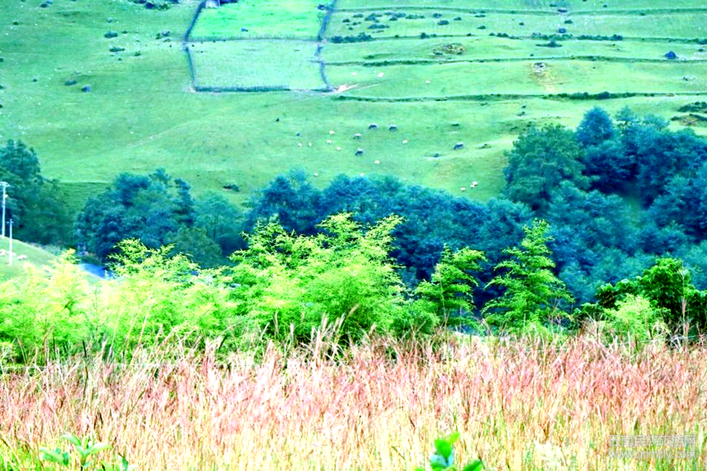 從阿幸廠遺址所在地向東北沿著老廠坪子西麓草甸步行北上一公里左右,即可到達八彎埡口古杜鵑林。