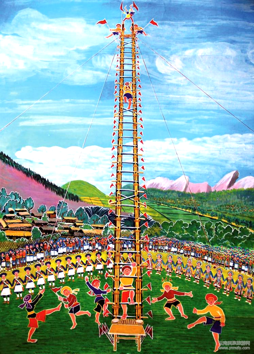 聯(lián)族傈僳族自古崇尚“刀山敢上、火海敢闖”的守邊衛(wèi)國精神,每年農(nóng)歷二月初八都要舉行“刀桿節(jié)”。刀桿節(jié)上,傈僳族上刀山、下火海為主打項目,同時,三弦舞、射弩、扭扁擔、口琴等傳統(tǒng)節(jié)目表演紛類雜陳。
