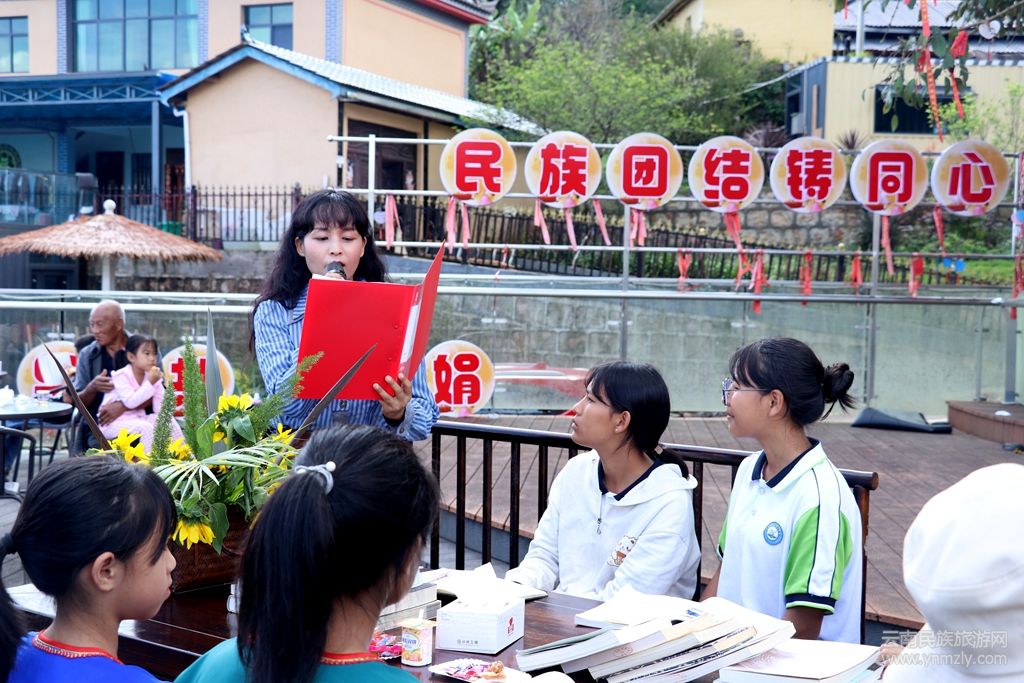 此次活動由鎮(zhèn)康縣賜福彝寨旅游景區(qū)管委會、鎮(zhèn)康縣民族宗教事務(wù)局牽頭,鎮(zhèn)康縣賜福彝寨農(nóng)旅專業(yè)合作社、鎮(zhèn)康縣新華書店共同承辦。活動共設(shè)分享讀書收獲、解讀中秋傳統(tǒng)文化、民族團結(jié)知識競答、民族歌舞表演、文稿創(chuàng)詞撰寫等多個內(nèi)容。活動以鑄牢中華民族共同體意識為主線,立足“邊”的實際,促成“融”的綻放,旨在通過書籍的橋梁,加深各民族群眾之間的相互理解和尊重,共話民族團結(jié)情,共建幸福和諧美麗平安家園。
