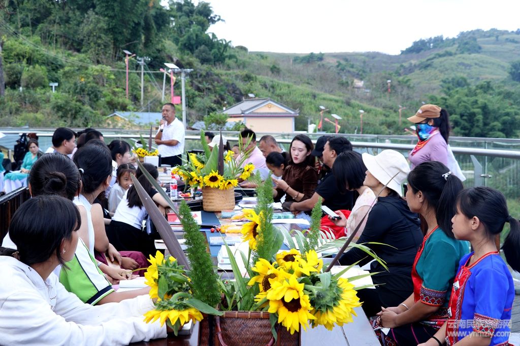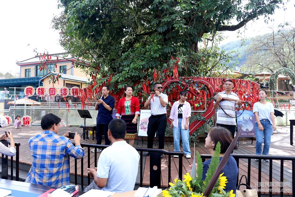 秋日的暖陽下,鎮(zhèn)康縣賜福彝寨旅游景區(qū)同心樹下洋溢著濃厚的書香與和諧的氣息,一場以“民族團結(jié)鑄同心”為主題的讀書沙龍活動在此溫馨啟幕。