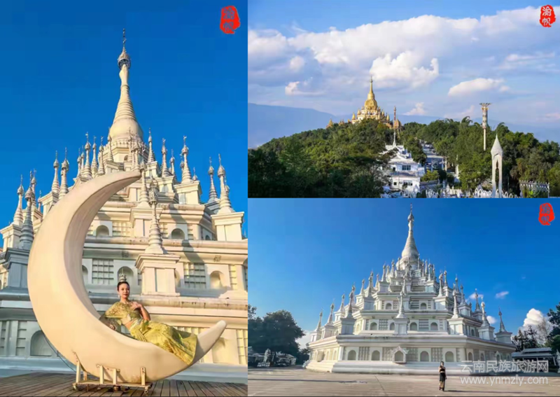 (附資料: 勐煥銀塔是一座新建的南傳佛教佛塔,又名萬佛塔,學(xué)名八萬四千塔,2009年規(guī)劃建設(shè),2013年建設(shè)完工,2019年對外開放,與勐煥大金塔相隔不遠,同位于孔雀湖畔的雷牙讓山之上,分立兩個山頭,一個金碧輝煌,一個銀光熠熠,一金一銀,遙相呼應(yīng)。