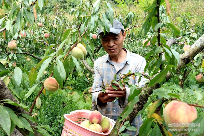 在木場鄉(xiāng)木場村厥壩自然村冬桃種植基地,百畝冬桃林郁郁蔥蔥。一顆顆身著粉紅“外衣”的成熟冬桃掛滿枝頭,微風(fēng)拂過,果香四溢,令人垂涎。這里的種植戶劉小梅正引導(dǎo)前來的顧客采摘果型美、肉質(zhì)好的冬桃。云南警官學(xué)院駐村工作隊(duì)長江濟(jì)趁周末也來“嘗鮮”,他稱贊道:“這桃子相當(dāng)脆甜,感覺比去年味道還好。駐村以來,我深感木場風(fēng)景優(yōu)美,桃花島很值得大家來賞景、品桃。”