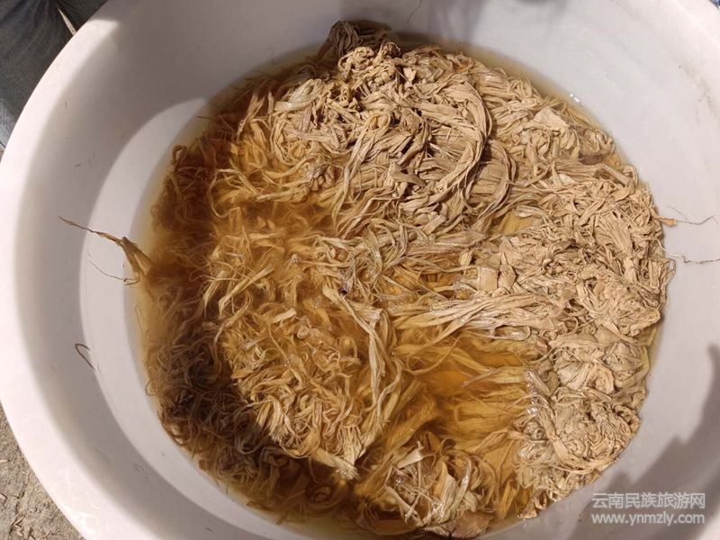 (2)泡構(gòu)皮。將買來的干構(gòu)皮放在流淌的清水中浸泡一夜使之韌軟。