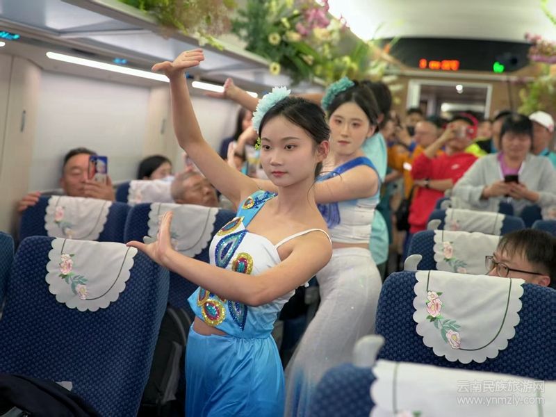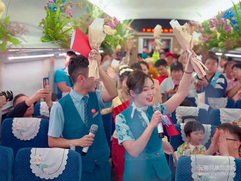 踏上這列充滿文化氣息的列車,仿佛置身于一場(chǎng)視覺與心靈的盛宴。國(guó)鐵昆明局巧妙運(yùn)用櫻花、紫羅蘭、玫瑰花等花卉與民族文化元素,將車廂裝點(diǎn)得美輪美奐,通過列車這一“流動(dòng)花海”,讓旅客在旅途中就能領(lǐng)略到云南獨(dú)特的花韻,享受“一路花香”的愜意體驗(yàn)。