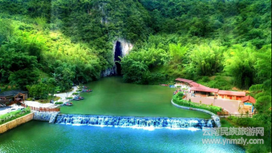 “壩美”,在當?shù)貕颜Z中意為“森林中的洞口”。壩美村屬喀斯特地貌,四周被翠綠的群山環(huán)抱,境內(nèi)一年四季流淌著一條名為“馱娘江”的清澈小河。這個村寨的神奇之處就在于,進出村都需乘船經(jīng)過幽深、昏暗的水洞。