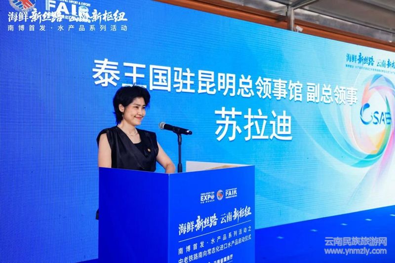 (本網(wǎng)訊:劉曉云)6月22日上午,云南省商務(wù)廳以“海鮮‘新絲路’·云南‘新樞紐’”為主題在昆明市呈貢寶珠梨產(chǎn)業(yè)園舉辦了南博首發(fā)·水產(chǎn)品系列活動(dòng)之中老鐵路南向常態(tài)化進(jìn)口水產(chǎn)品啟動(dòng)儀式。省商務(wù)廳、昆明海關(guān)、泰王國(guó)駐昆明總領(lǐng)事館、呈貢區(qū)商務(wù)和投資促進(jìn)局、吳家營(yíng)街道辦,云南省餐飲與美食行業(yè)協(xié)會(huì)、云南省水產(chǎn)品行業(yè)協(xié)會(huì)、昆明市餐飲與美食行業(yè)協(xié)會(huì)、泰國(guó)老撾水產(chǎn)品供應(yīng)商、省內(nèi)外水產(chǎn)品企業(yè)代表、酒店和餐飲企業(yè)代表等150余人出席活動(dòng)。