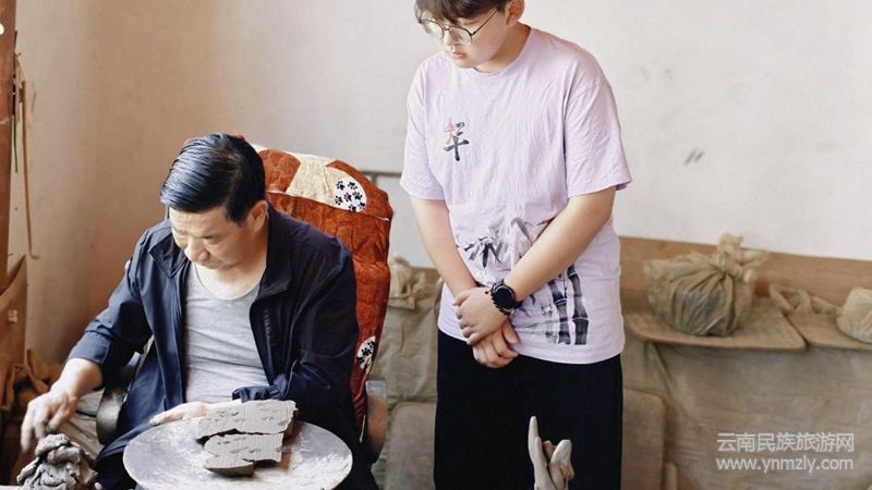 研學(xué)首站,支教團(tuán)走進(jìn)鶴慶瓦貓非遺傳承基地。院落內(nèi),姿態(tài)各異的青灰色瓦貓坯子靜默佇立,凝聚匠人巧思。傳承人郜師傅詳解瓦貓作為屋頂“守護(hù)神”驅(qū)邪納福的文化寓意與造型講究。成員們親手觸摸瓦貓的溫度,聆聽其承載古今百姓對(duì)美好生活殷切期望的故事,深刻體悟到這項(xiàng)技藝所蘊(yùn)含的深厚民俗信仰與文化守護(hù)價(jià)值,在靜默陶韻中守護(hù)祈愿之心。