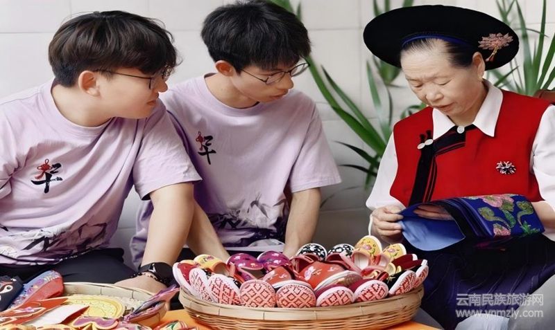 研學(xué)第二站,團(tuán)隊(duì)步入白族刺繡工坊。年逾古稀的繡娘楊奶奶展示“盤金繡”絕技,講解一件披肩需耗時(shí)三月的精工細(xì)作。在楊奶奶指導(dǎo)下,成員們嘗試刺繡,雖針腳稚嫩,但最終初現(xiàn)的幾何紋樣令人興奮。指尖穿梭的絲線傳遞著溫度,成員們親歷千針萬(wàn)線的往復(fù),親身體驗(yàn)了“慢工出細(xì)活”的堅(jiān)守,領(lǐng)悟到非遺傳承的真諦在于一針一線的堅(jiān)持與代代薪火相傳的恒心。