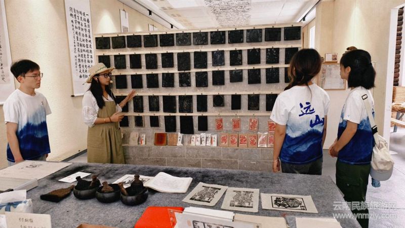 研學(xué)第四站,團(tuán)隊(duì)深入非遺手工棉紙作坊。在氤氳著植物清香的工坊內(nèi),成員們見證了構(gòu)樹皮經(jīng)浸泡、蒸煮、搗漿、抄紙、晾曬等繁復(fù)工序蛻變?yōu)槿犴g棉紙的神奇過(guò)程。在親手體驗(yàn)印紙環(huán)節(jié),為素紙賦予獨(dú)特紋樣,感受“時(shí)間與自然饋贈(zèng)”的深意。通過(guò)親歷古法造紙,成員們驚嘆于匠人巧思,更于木漿成紙的自然韻律中,感悟“人與自然和諧共生”的生態(tài)本心。