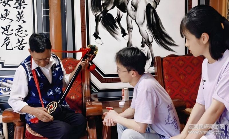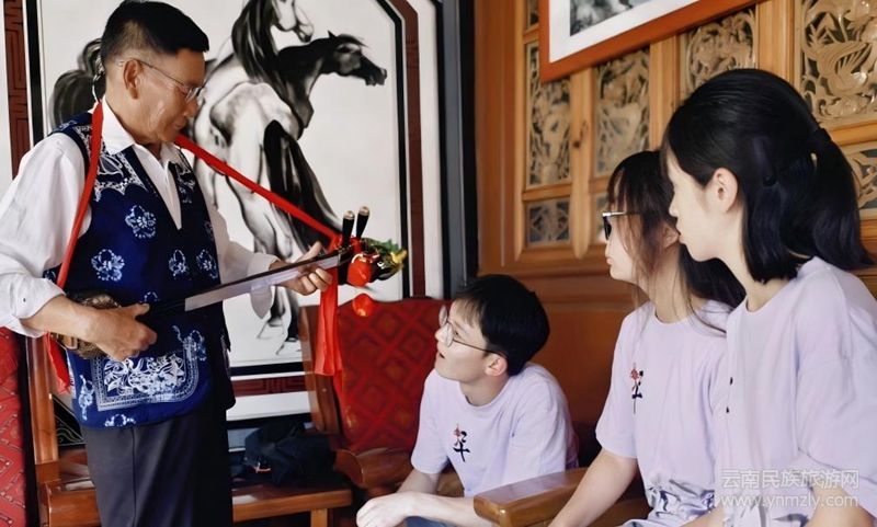 暮色時(shí)分,團(tuán)隊(duì)駐足稻田埂。傳承人李爺爺懷抱三弦,用白族方言唱起原生態(tài)“田埂調(diào)”。歌聲隨稻浪起伏,吟詠農(nóng)耕日常,質(zhì)樸動(dòng)人。“這歌是田埂上‘長(zhǎng)’出來(lái)的。”成員們雖不解方言,卻在旋律中感受到與喧囂都市截然不同的“自然頻率”,輕聲應(yīng)和。夕陽(yáng)下,那未經(jīng)雕琢的歌聲讓成員們讀懂農(nóng)人對(duì)土地的深情眷戀與生活的質(zhì)樸熱愛,體味到熱愛生活的質(zhì)樸本心。